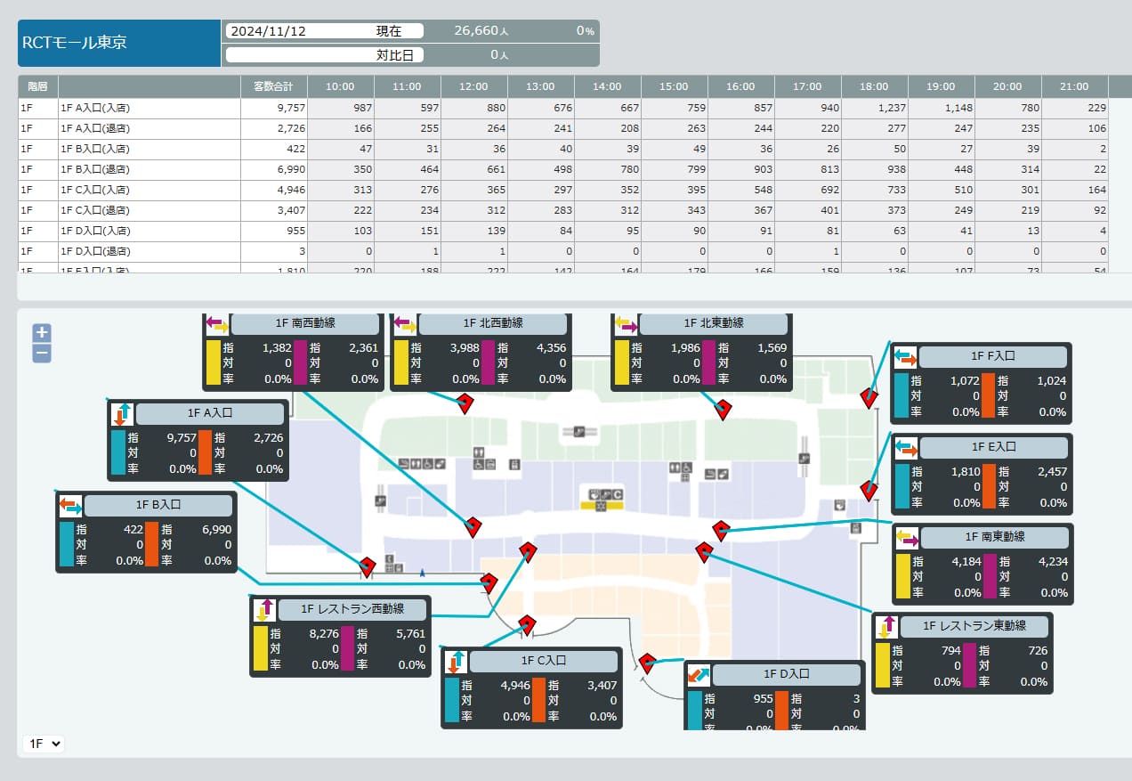 独自開発の分析プラットフォームにより来店・通行データをビジュアル化し、