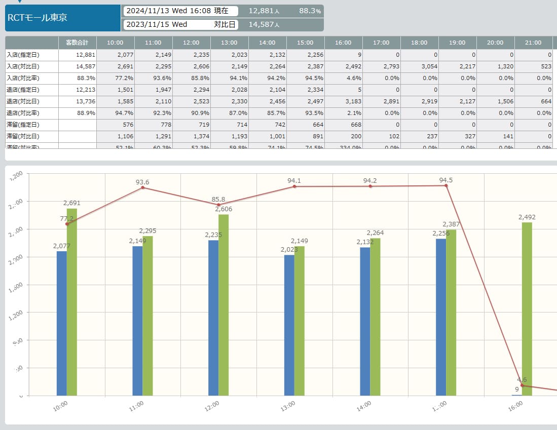 各フロア別の客数分析・回遊率・購買転換率の時系列分析