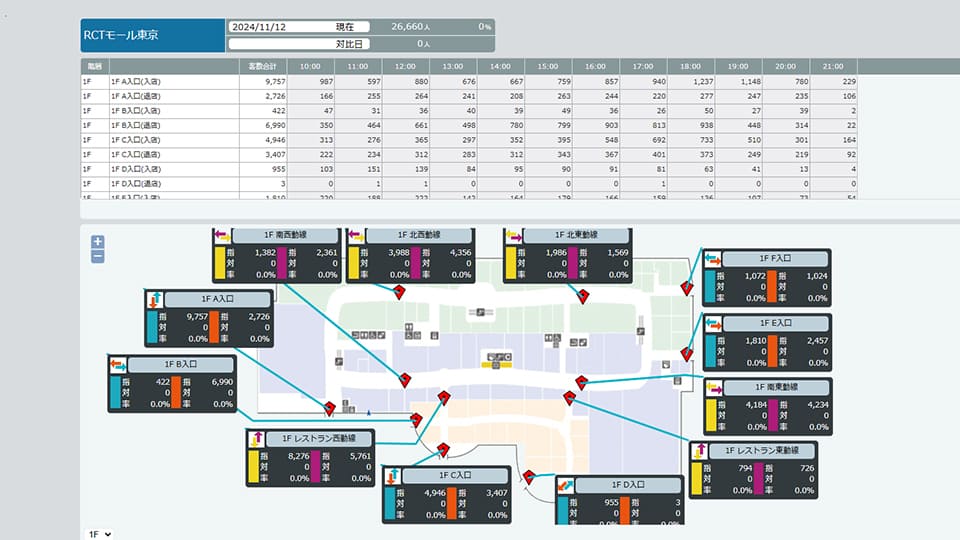 独自開発の分析プラットフォームにより来店・通行データをビジュアル化し、